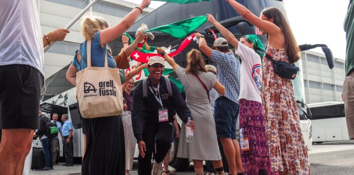 Am Samstag brachen wir schliesslich zum Abschlussfeld auf. Menschen, Fahnen und Lieder soweit das Auge reichte – und doch war die Atmosphäre friedlich. Die Sonne zeigte sich gnädig: Es war zwar heiss, aber nicht unerträglich, immer wieder zogen Wolken durch. Wir richteten uns auf unserem Platz ein – dann traf der Papst per Hubschrauber ein und fuhr im Papamobil durch die Reihen. Der Höhepunkt des Abends war die Vigil: In der Stille der Anbetung – unter freiem Himmel, umgeben von einer Million junger Menschen– schien die ganze Welt den Atem anzuhalten. Alle waren ausgerichtet auf Gott.